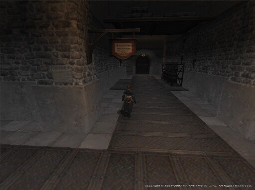 倉庫らしい通路の奥に看板かかってたり